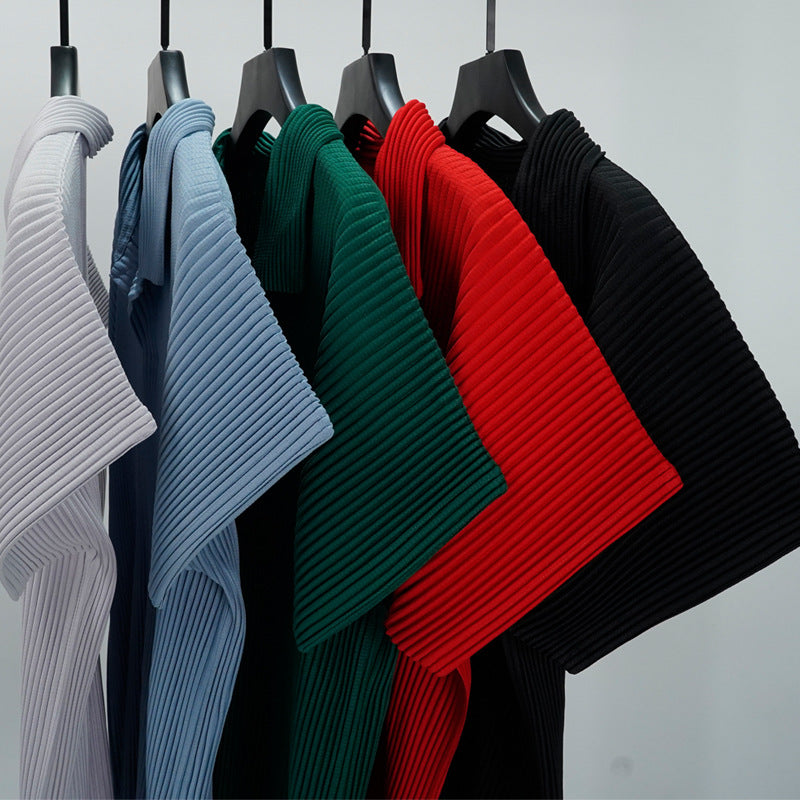 Men’s Pleated Polo Shirt — Miyake-Inspired Minimalist Design, Luxurious Texture, Breathable & Stretchy
