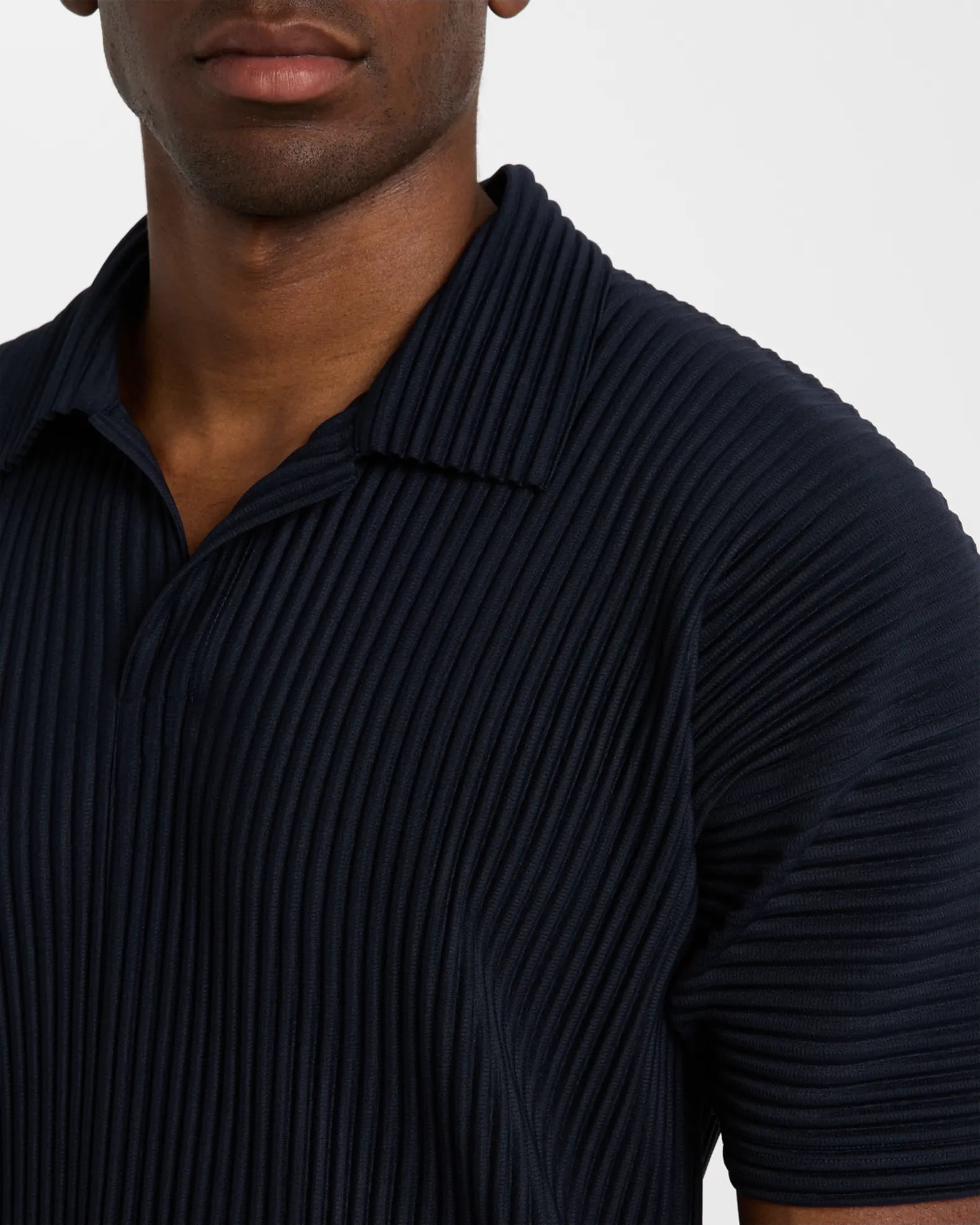 This Homme Plissé–inspired pleated polo is crafted for the man who lives between motion and stillness — between the calm of morning sunlight and the pulse of the game.